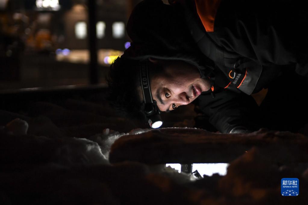 11月12日,吉林省長(cháng)春市迎來(lái)降雪。13日凌晨,在長(cháng)春火車(chē)站內,多個(gè)單位、工種相互配合,利用深夜列車(chē)停運的“天窗期”開(kāi)展除冰除雪作業(yè),確保列車(chē)行駛安全。
