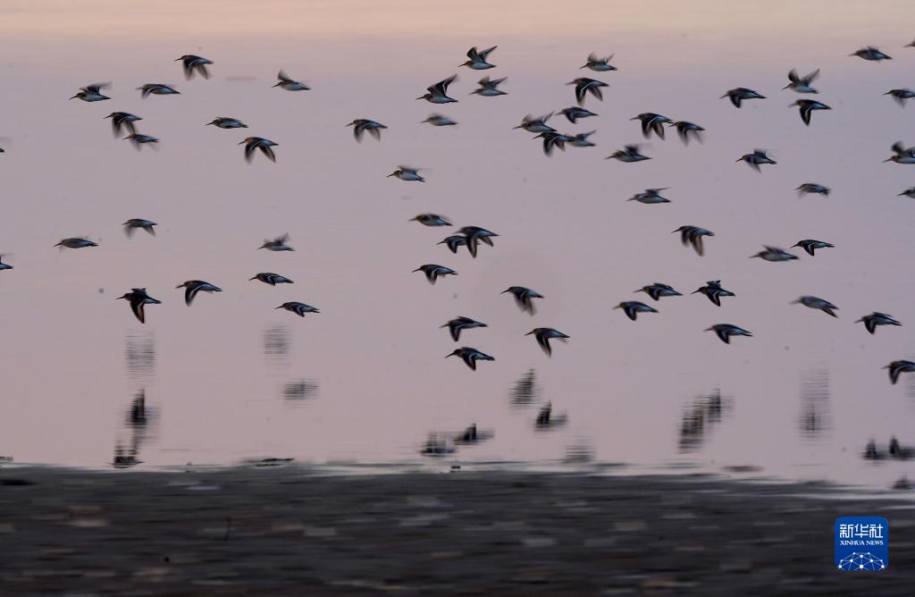 11月11日,一群水鳥(niǎo)在江西鄱陽(yáng)湖南磯濕地國家級自然保護區的濕地棲息。