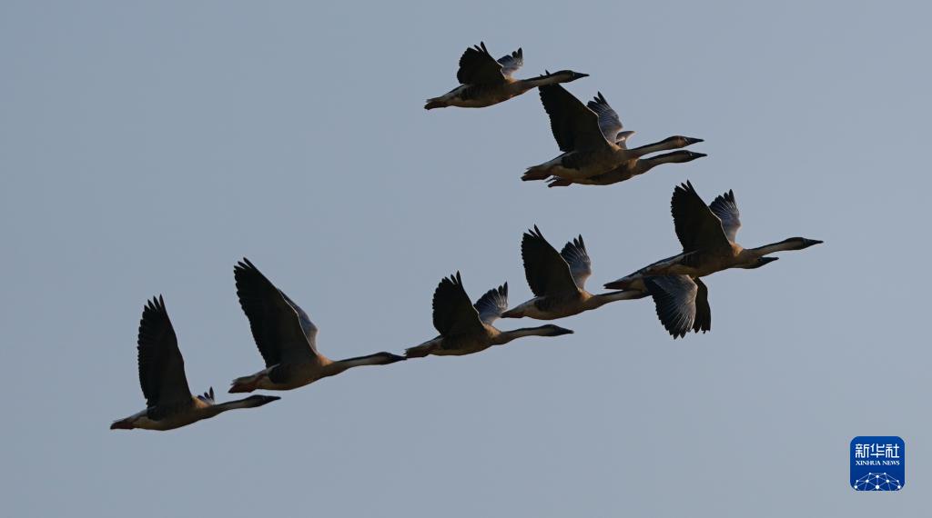 11月10日,鴻雁在南昌高新區五星白鶴保護小區飛翔。