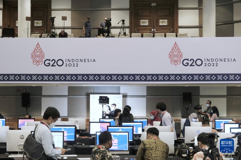 11月13日,媒體工作者在印度尼西亞巴厘島的峰會(huì )媒體中心工作。