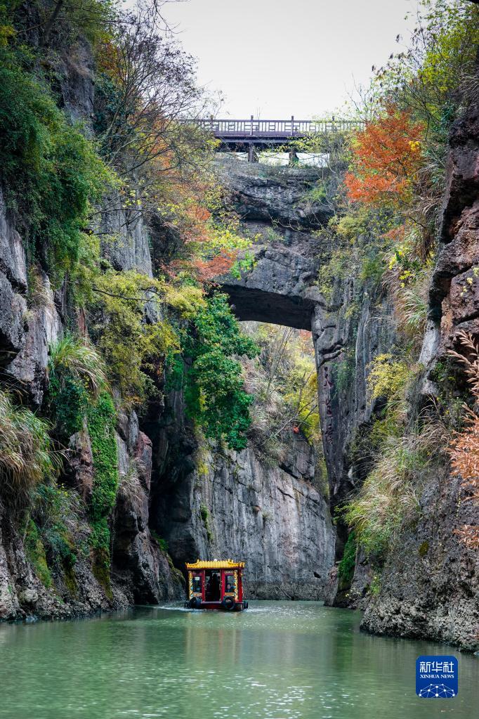 11月13日,一艘游船行駛在胭脂河上。