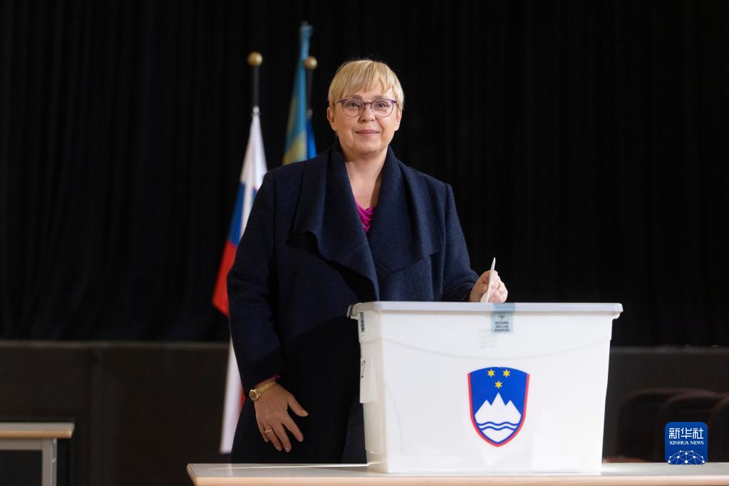 11月13日,娜塔莎·皮爾茨·穆薩爾在斯洛文尼亞一處投票站投票。新華社發(fā)(澤利科·斯特凡尼奇 攝)
