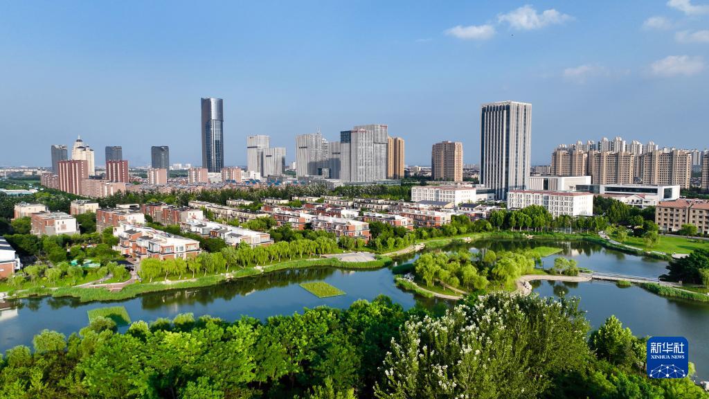 東營(yíng)市麗日湖景色(7月7日攝,無(wú)人機照片)。