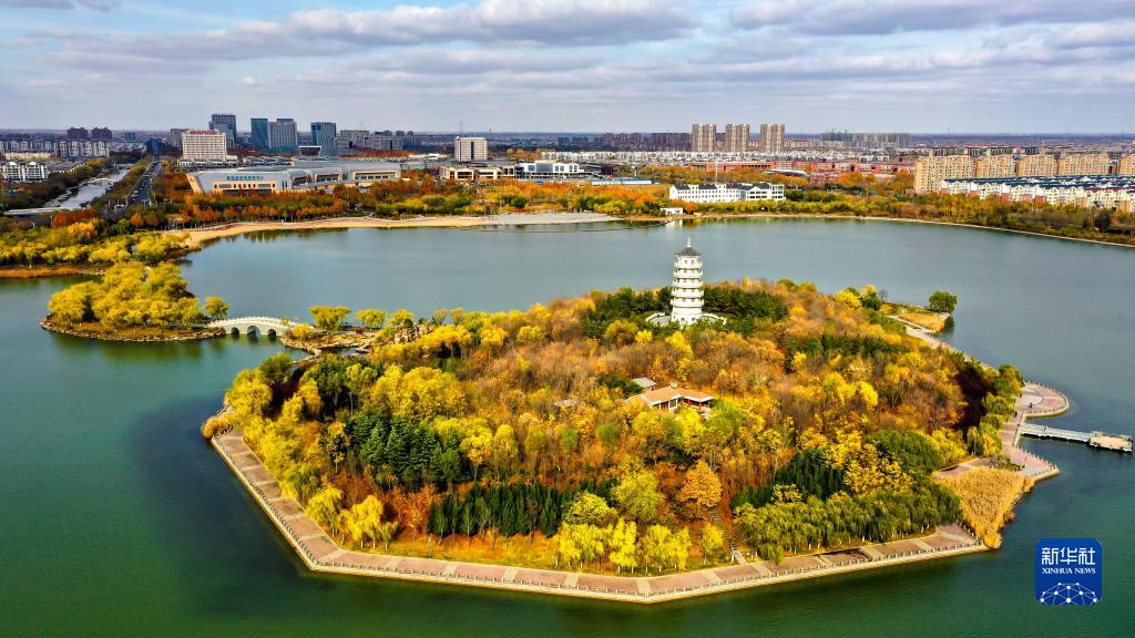 東營(yíng)市墾利區民豐湖公園景色(11月13日攝,無(wú)人機照片)。