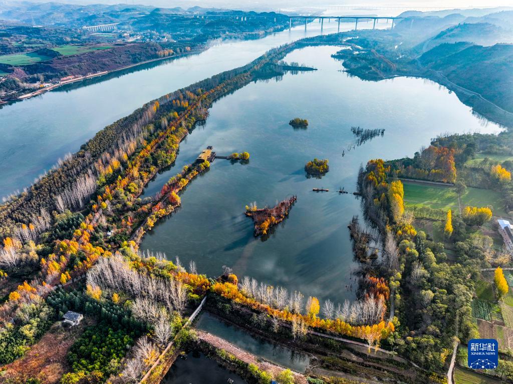 11月14日拍攝的河南黃河濕地國家級自然保護區濟源段景色(無(wú)人機照片)。