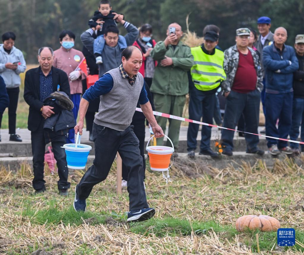 11月15日,參賽村民參加“運水抗旱”趣味比賽。