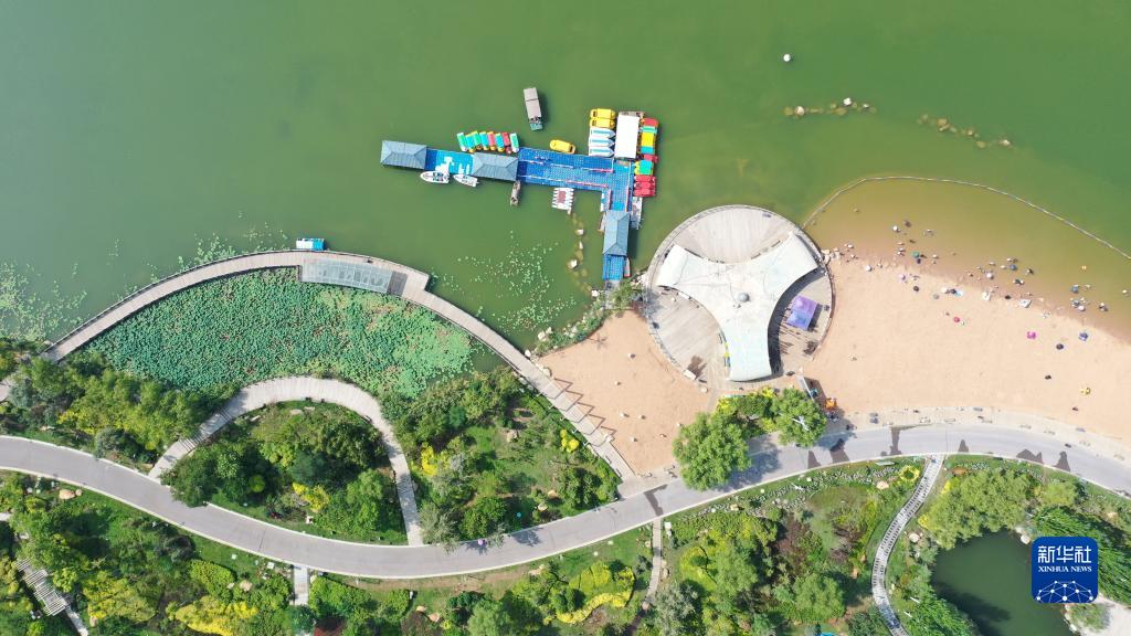 寧夏銀川市閱海國家濕地公園一景(2021年8月7日攝,無(wú)人機照片)。