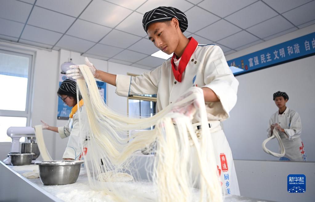 藍田廚師學(xué)校的學(xué)生在練習制作拉面(11月15日攝)。