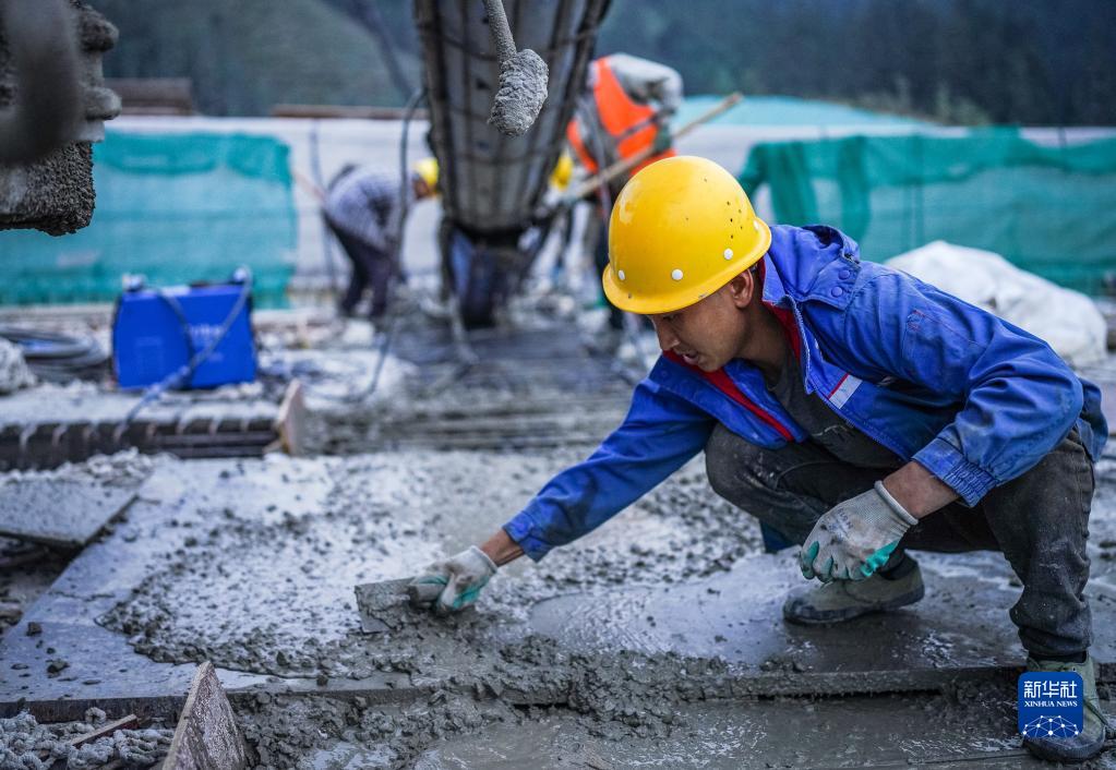 工人在雷榕高速平永互通進(jìn)行施工(11月15日攝)。