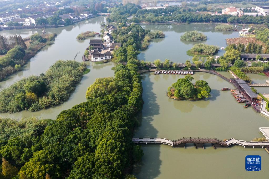 沙家浜國家濕地公園景色(11月15日攝,無(wú)人機照片)。 新華社記者 楊磊 攝