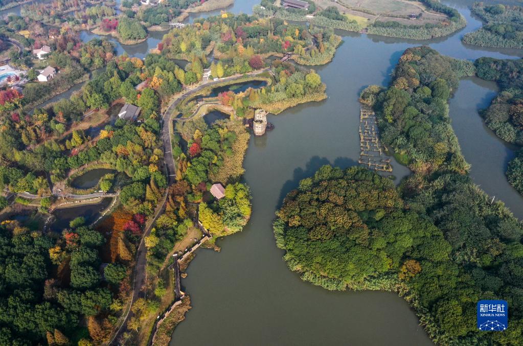 沙家浜國家濕地公園景色(11月15日攝,無(wú)人機照片)。 新華社記者 楊磊 攝