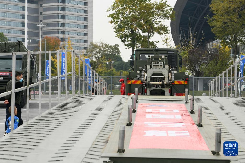 這是在第十屆中國(綿陽(yáng))科技城國際科技博覽會(huì )現場(chǎng)展出的應急機械化橋(11月16日攝)。