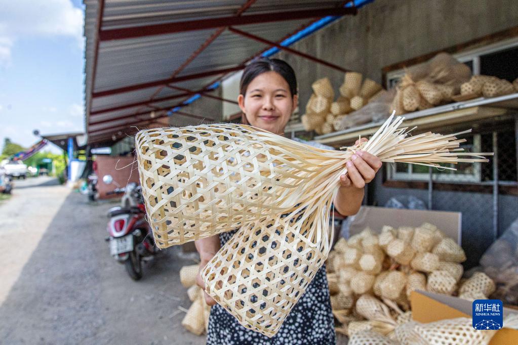 11月9日,泰國清邁一家“插隆”工廠(chǎng)的工作人員向記者展示“插隆”。