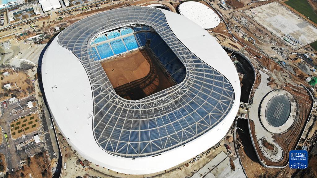 建設中的青島青春足球場(chǎng)(11月16日攝,無(wú)人機照片)。