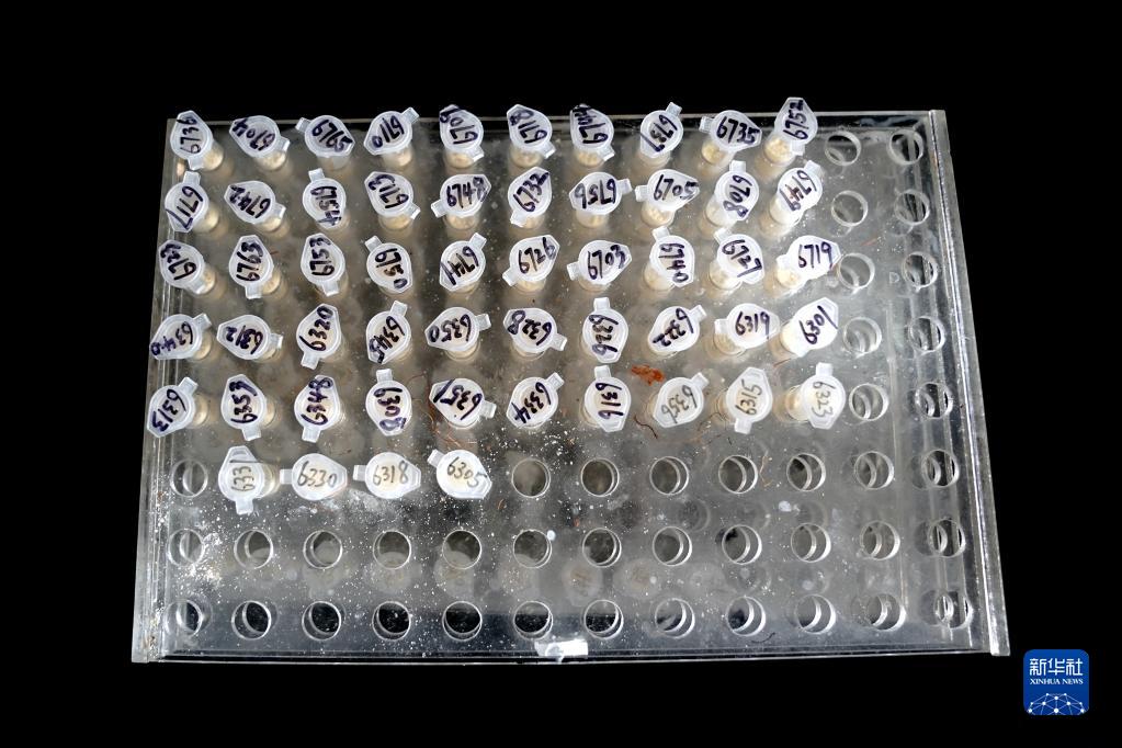 11月16日在中國科學(xué)院分子植物科學(xué)卓越創(chuàng )新中心實(shí)驗室拍攝的玉米籽粒粉末樣品。