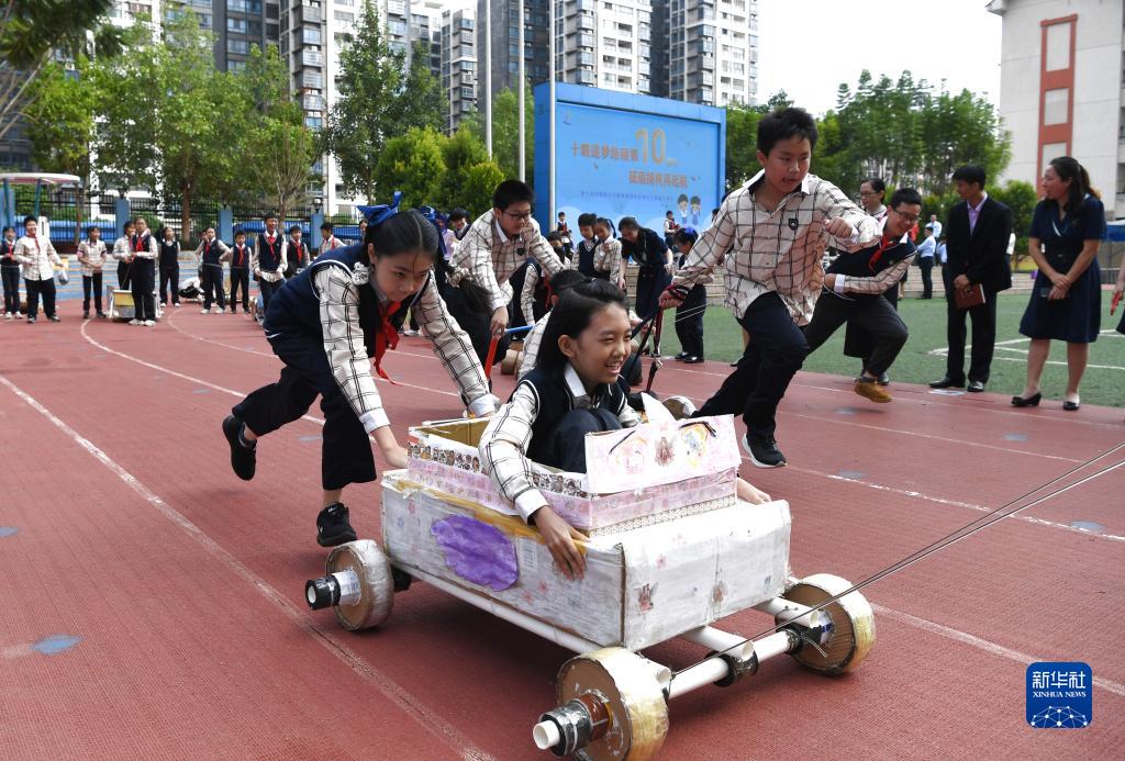 當日,廣西南寧市濱湖路小學(xué)教育集團山語(yǔ)城校區舉行慶祝落成10周年活動(dòng),孩子們以民族舞蹈、環(huán)保紙車(chē)賽等活動(dòng)迎校慶。