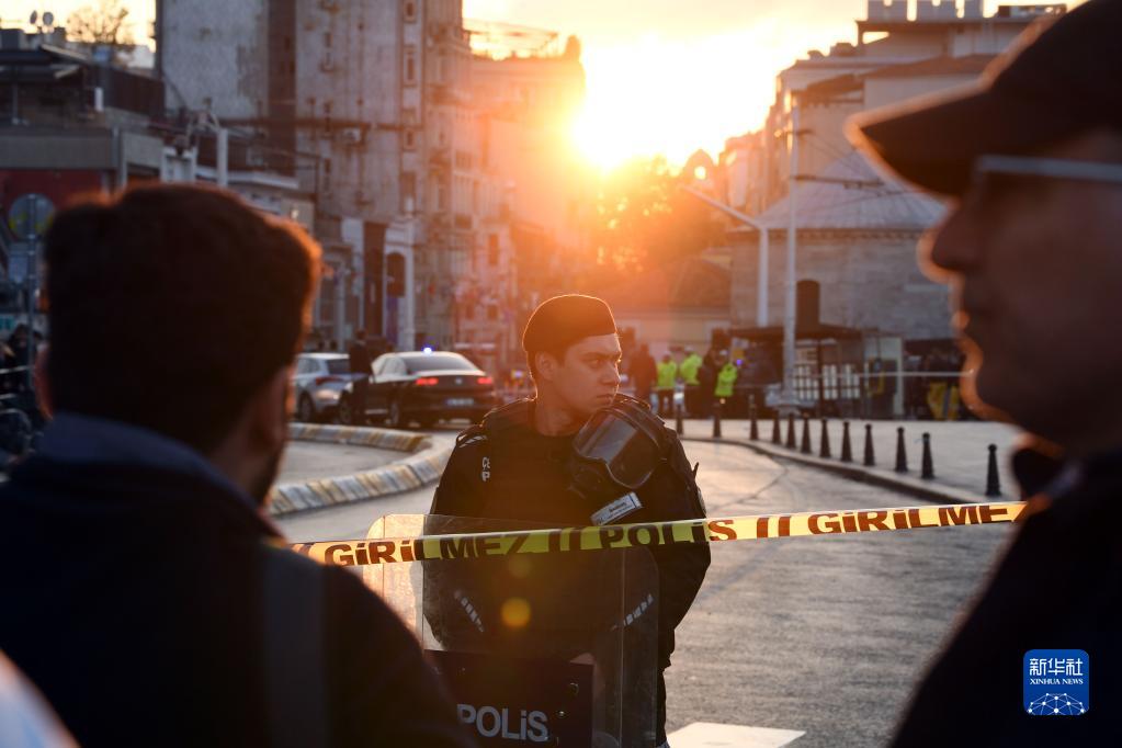 11月13日,警察在土耳其伊斯坦布爾市中心塔克西姆廣場(chǎng)警戒。