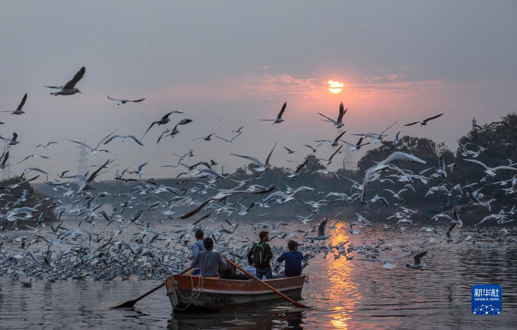 11月15日,候鳥(niǎo)在印度新德里亞穆納河上飛翔。