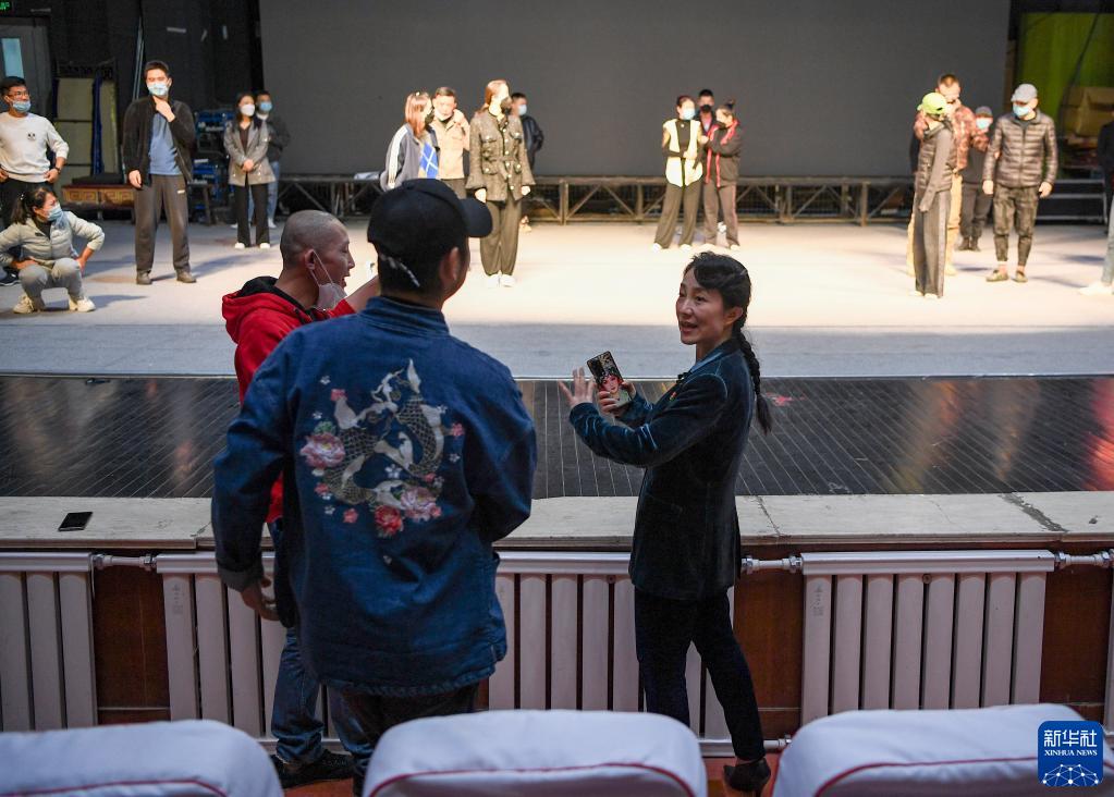 11月1日,在位于銀川市的寧夏秦腔劇院,侯艷(前右)在指導演職人員排練節目《始終同人民在一起》。