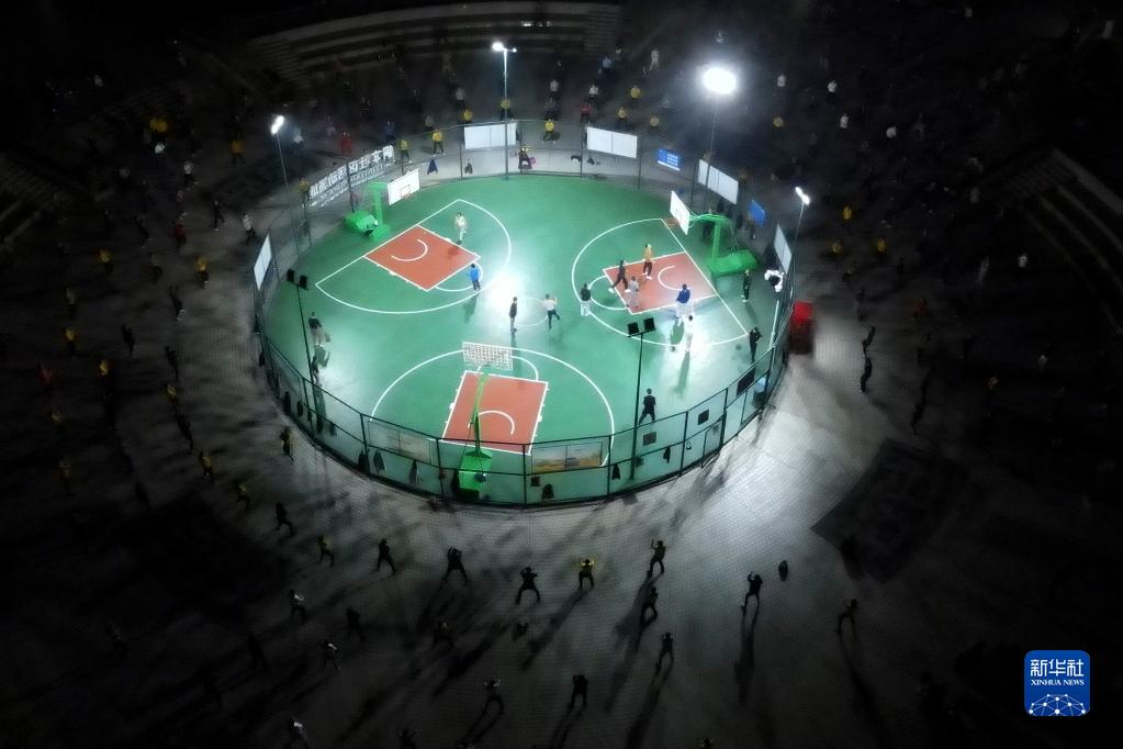 11月15日,市民在銅陵市一處“口袋公園”內健身(無(wú)人機照片)。近年來(lái),安徽省銅陵市建設集健身、休閑、賞景等功能為一體的“口袋公園”,拓展城市綠地面積和居民休閑空間。