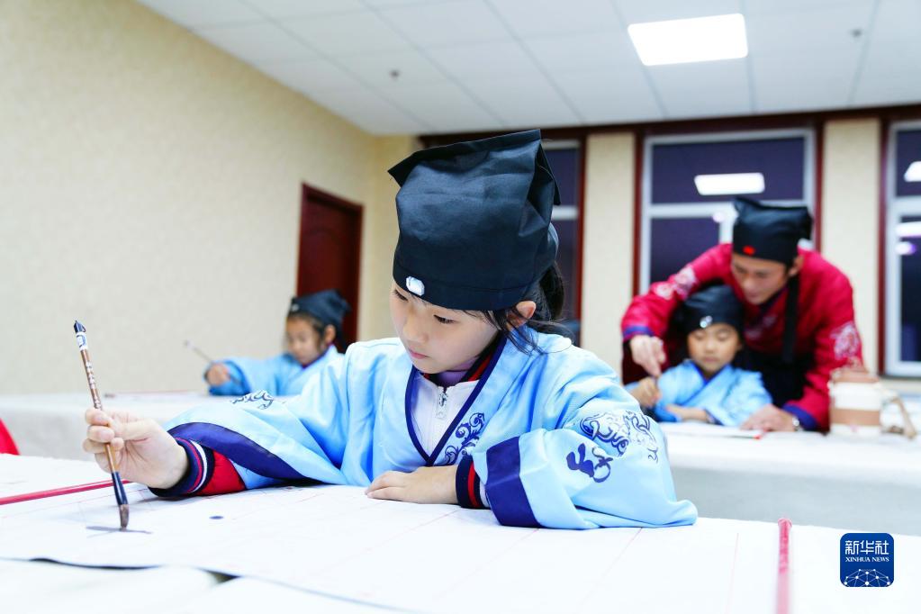 11月19日,在桓臺縣果里鎮伊家村鄉村“復興少年宮”,孩子們在練習書(shū)法。