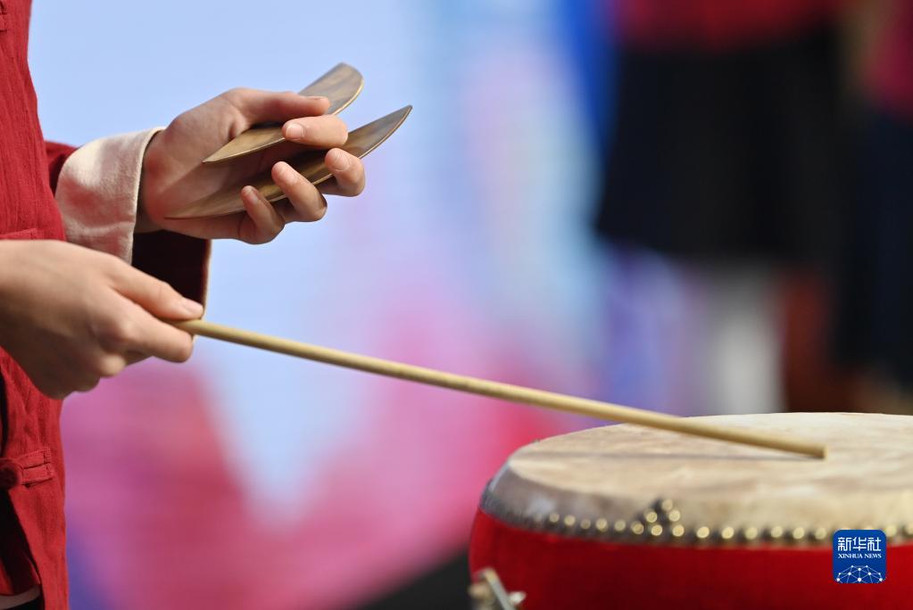 天津師范大學(xué)第三附屬小學(xué)的學(xué)生在練習京東大鼓(11月18日攝)。
