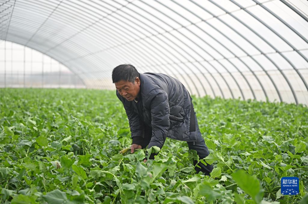 農民在天津市西青區辛口鎮種植沙窩蘿卜的大棚內收獲蘿卜(11月18日攝)。