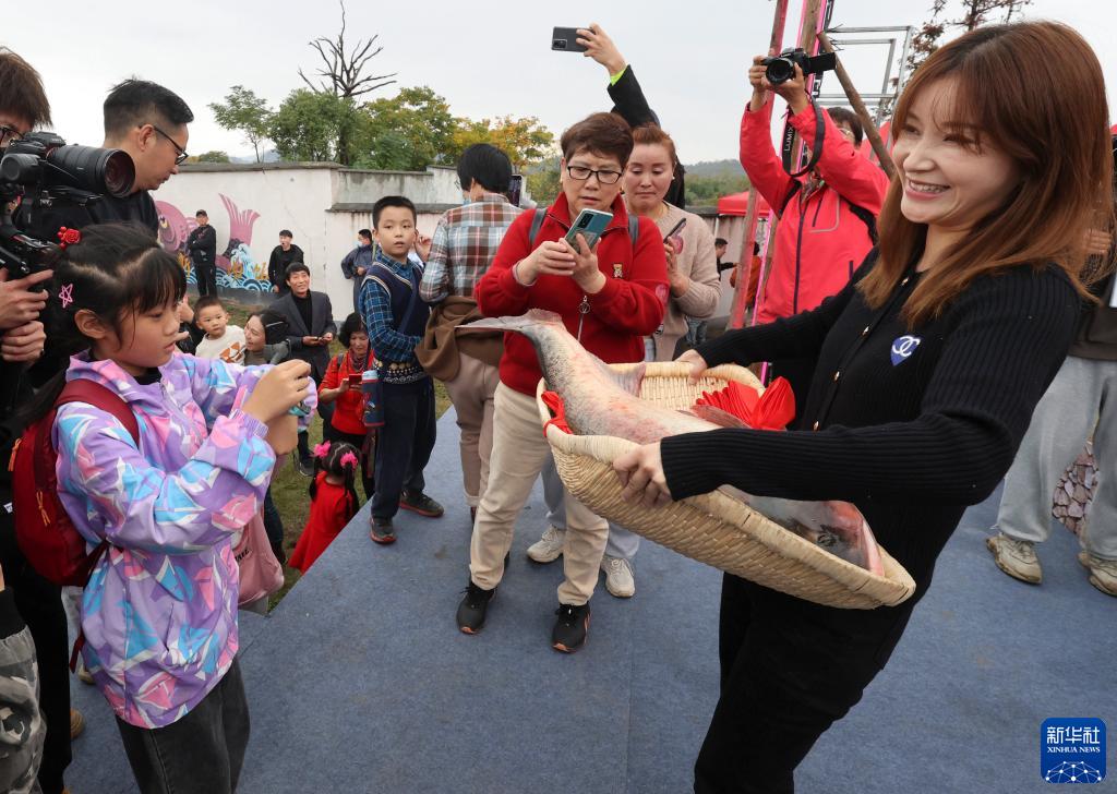 11月19日,游客在活動(dòng)現場(chǎng)觀(guān)賞捕獲的“魚(yú)王”。
