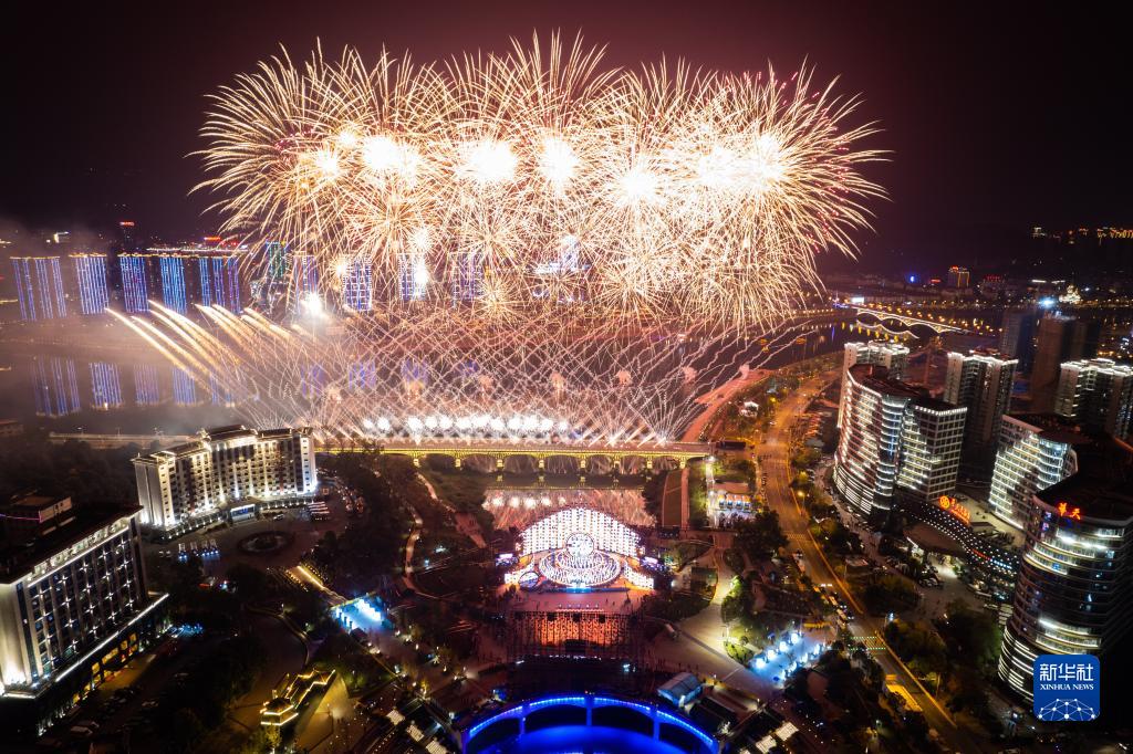 這是11月19日拍攝的首屆湖南旅游發(fā)展大會(huì )開(kāi)幕式現場(chǎng)(無(wú)人機照片)。