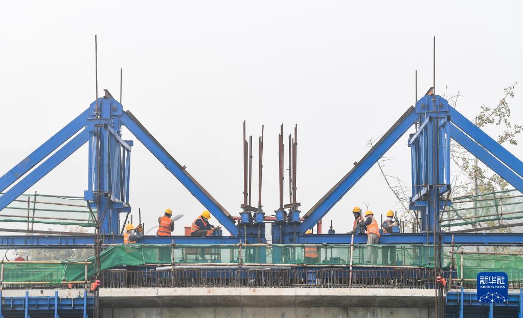 11月19日,工人在重慶城軌快線(xiàn)璧銅線(xiàn)璧山段施工現場(chǎng)作業(yè)。