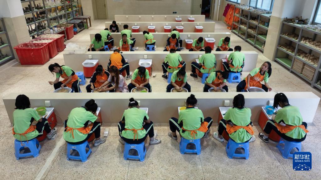 11月20日,聽(tīng)障學(xué)生在泉州市特殊教育學(xué)校陶藝制作中心上陶藝課(無(wú)人機照片)。