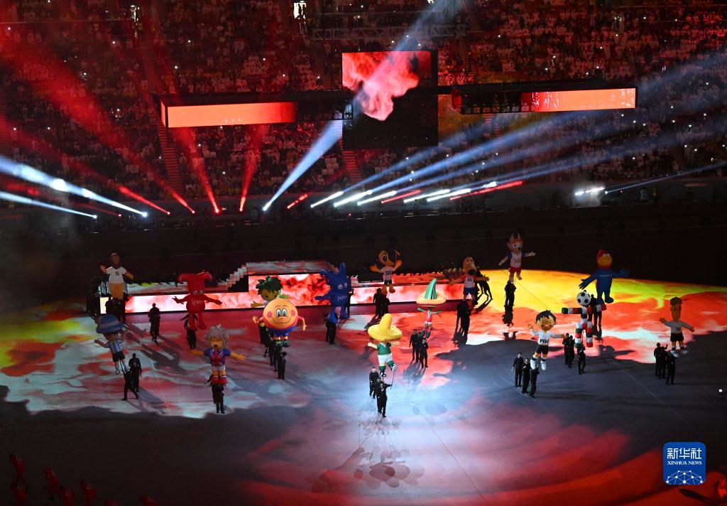 11月20日,歷屆世界杯吉祥物在開(kāi)幕式上。