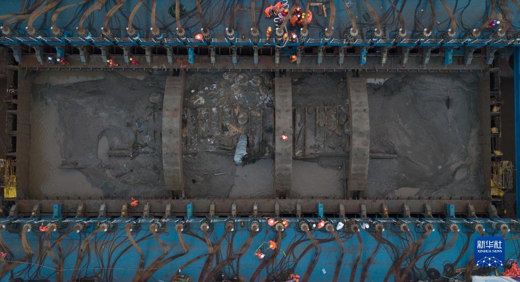 采用世界首創(chuàng )的“弧形梁非接觸文物整體遷移技術(shù)”, 我國迄今水下考古發(fā)現的體量最大的木質(zhì)沉船——長(cháng)江口二號古船21日在長(cháng)江口水域成功實(shí)施整體打撈。隨著(zhù)打撈進(jìn)展有序推進(jìn),21日清晨,長(cháng)江口二號古船船體已局部露出水面,初露真容。