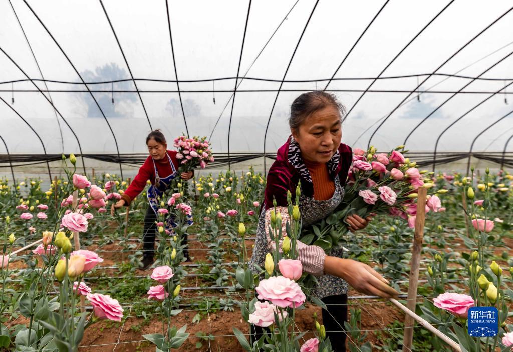 11月21日,村民在貴州省黔西市金碧鎮鏵口村花卉基地采摘鮮花。