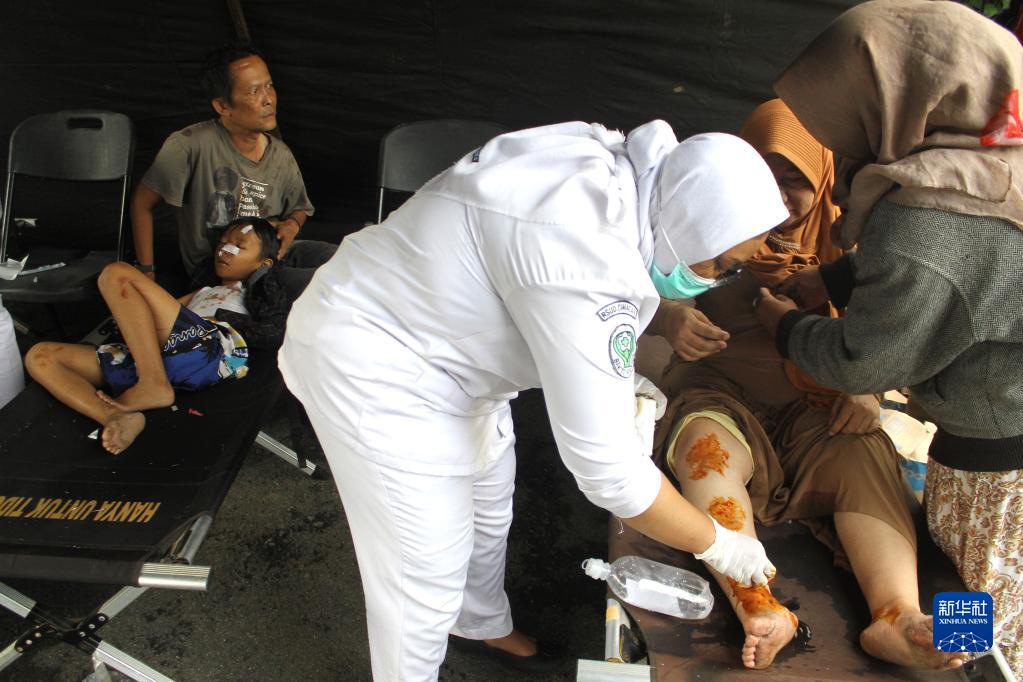 11月21日,醫務(wù)人員在印度尼西亞西爪哇省展玉救治傷者。