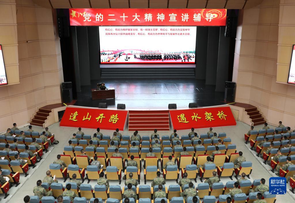 陸軍工程大學(xué)“星火”理論宣講服務(wù)政治教員群體成員吳定平宣講黨的二十大精神(2022年10月26日攝)。新華社發(fā)(徐雅 攝)