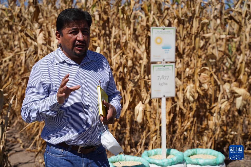 11月7日,一位專(zhuān)家在墨西哥特斯科科郊外國際玉米小麥改良中心的試驗田里進(jìn)行介紹。
