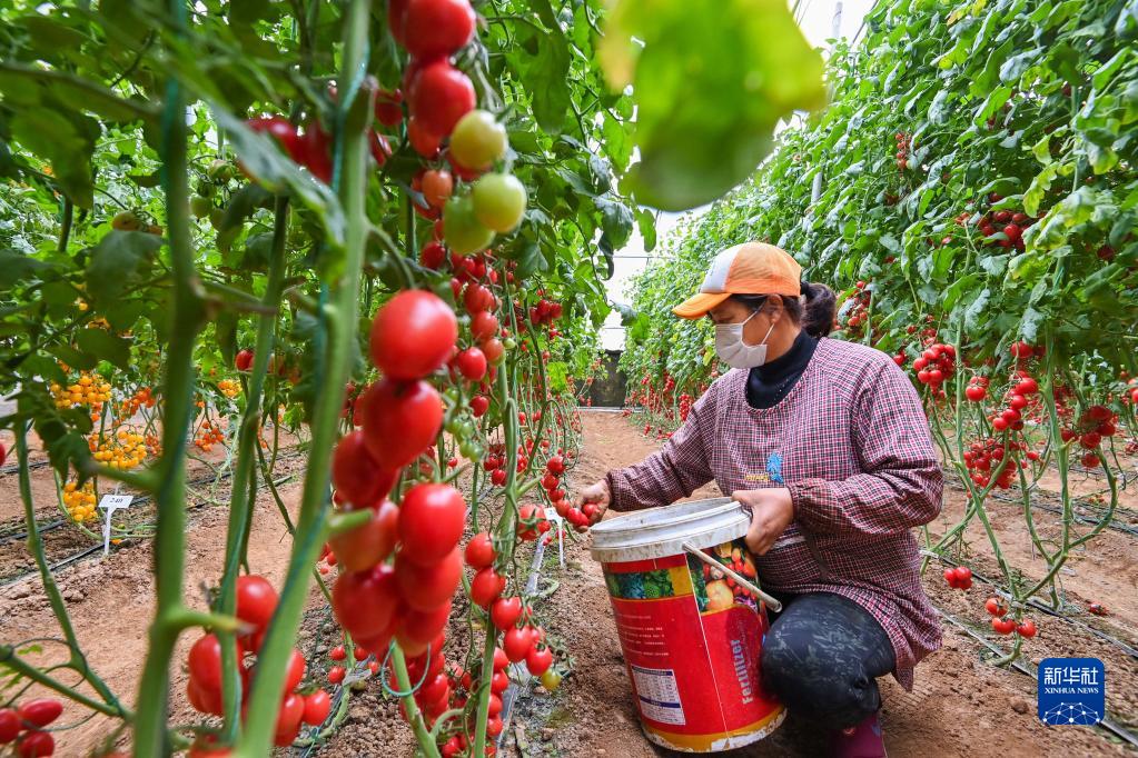 11月22日,在山東省青州市益都街道一農業(yè)科技示范園,農民在采收圣女果。