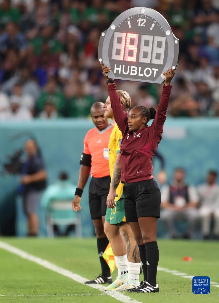 11月22日,本場(chǎng)比賽第四官員盧旺達女裁判薩利瑪·穆坎桑加(右)在場(chǎng)邊工作。