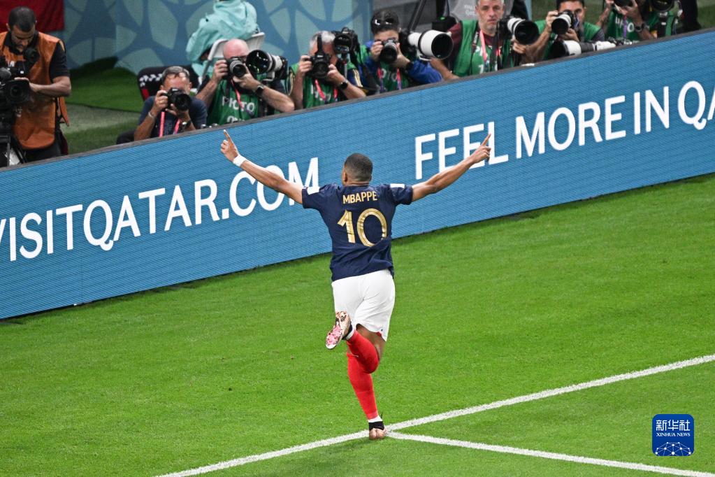 11月22日,法國隊球員姆巴佩在比賽中慶祝進(jìn)球。