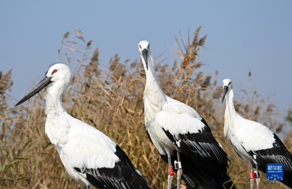 東方白鸛是國家一級保護動(dòng)物。3只東方白鸛在回歸自然的同時(shí)還佩戴了衛星跟蹤器,工作人員將對它們進(jìn)行持續監測,以便更好掌握其活動(dòng)及健康情況。