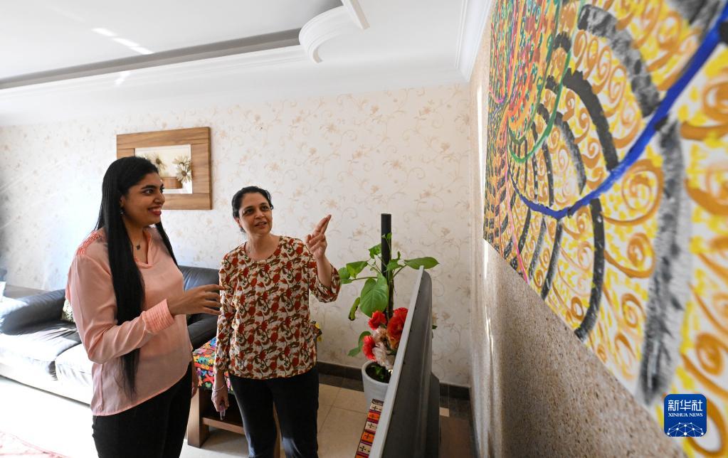 辛格在位于天津市津南區的家中與母親交流繪畫(huà)作品(11月22日攝)。