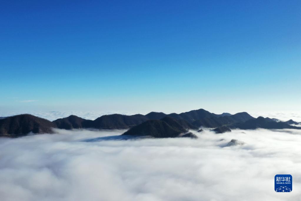 11月24日在湖北省襄陽(yáng)市??悼h馬橋鎮梨花山拍攝的云海(無(wú)人機照片)。