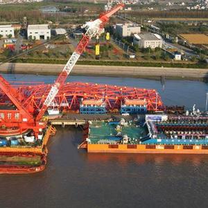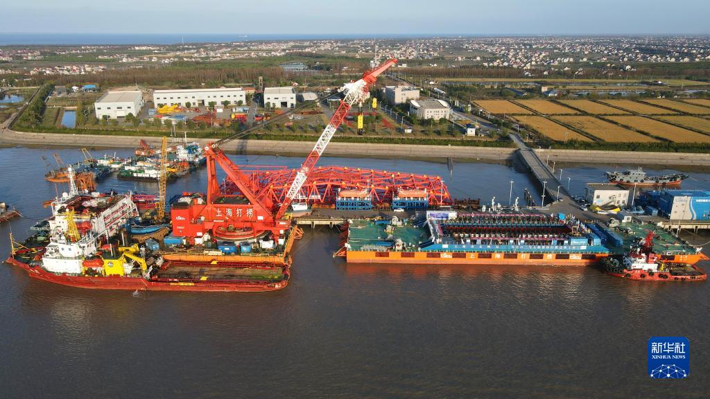 當日,在上海橫沙島的橫沙碼頭,“奮力”輪整裝待發(fā)。它“懷抱”著(zhù)長(cháng)江口二號古船,即將駛往位于上海楊浦濱江的上海船廠(chǎng)舊址1號船塢。長(cháng)江口二號古船將在黃浦江畔“安家”。