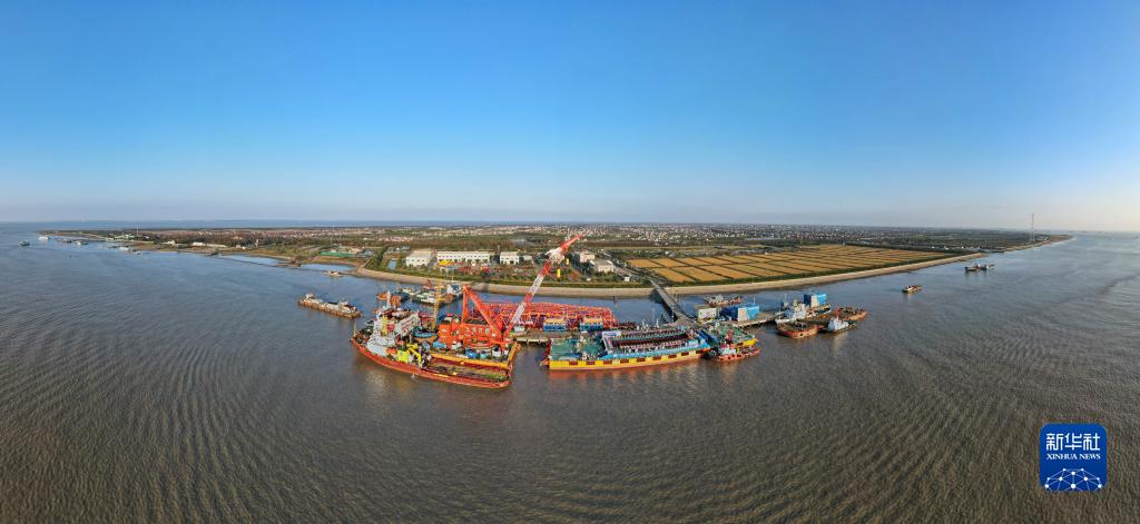 當日,在上海橫沙島的橫沙碼頭,“奮力”輪整裝待發(fā)。它“懷抱”著(zhù)長(cháng)江口二號古船,即將駛往位于上海楊浦濱江的上海船廠(chǎng)舊址1號船塢。長(cháng)江口二號古船將在黃浦江畔“安家”。
