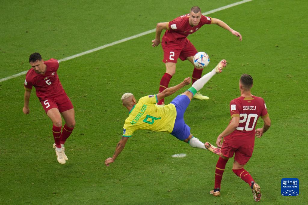當日,在卡塔爾盧賽爾球場(chǎng)進(jìn)行的2022卡塔爾世界杯足球賽G組比賽中,巴西隊以2比0戰勝塞爾維亞隊。