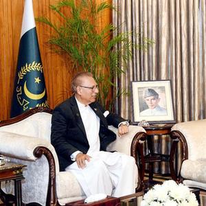 11月24日,巴基斯坦總統阿爾維(左)在首都伊斯蘭堡會(huì )見(jiàn)候任參謀長(cháng)聯(lián)席會(huì )議主席薩希爾·沙姆沙德·米爾扎。
