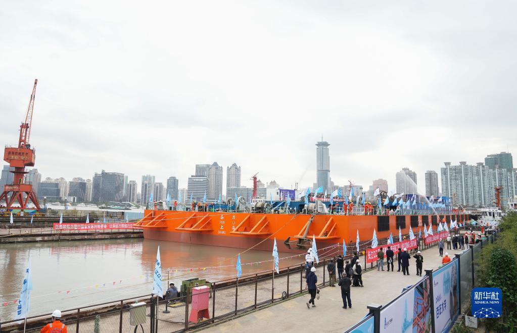 11月25日,“奮力”輪裝載著(zhù)長(cháng)江口二號古船進(jìn)入上海船廠(chǎng)舊址1號船塢。