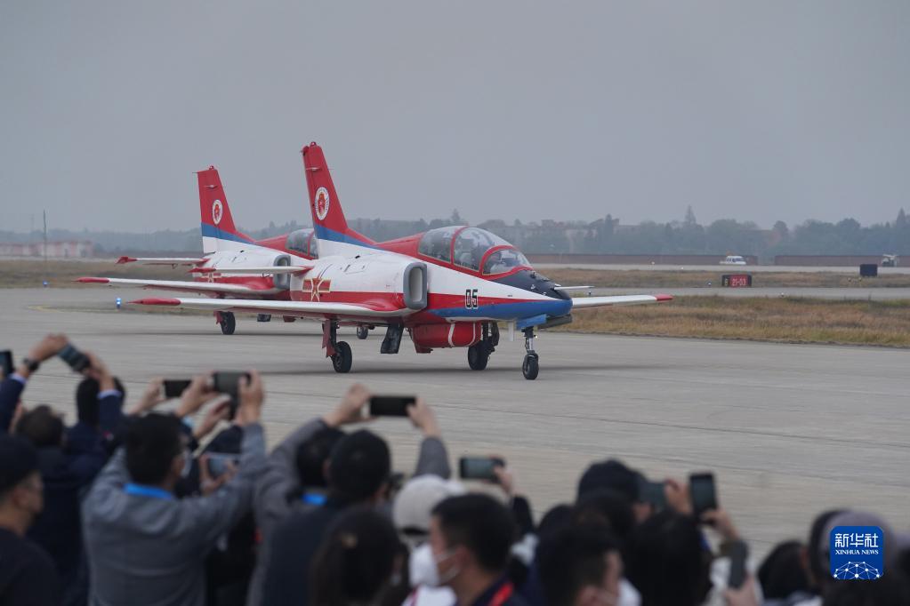 11月25日,空軍航空大學(xué)“紅鷹”飛行表演隊在表演結束后從觀(guān)眾面前駛過(guò)。