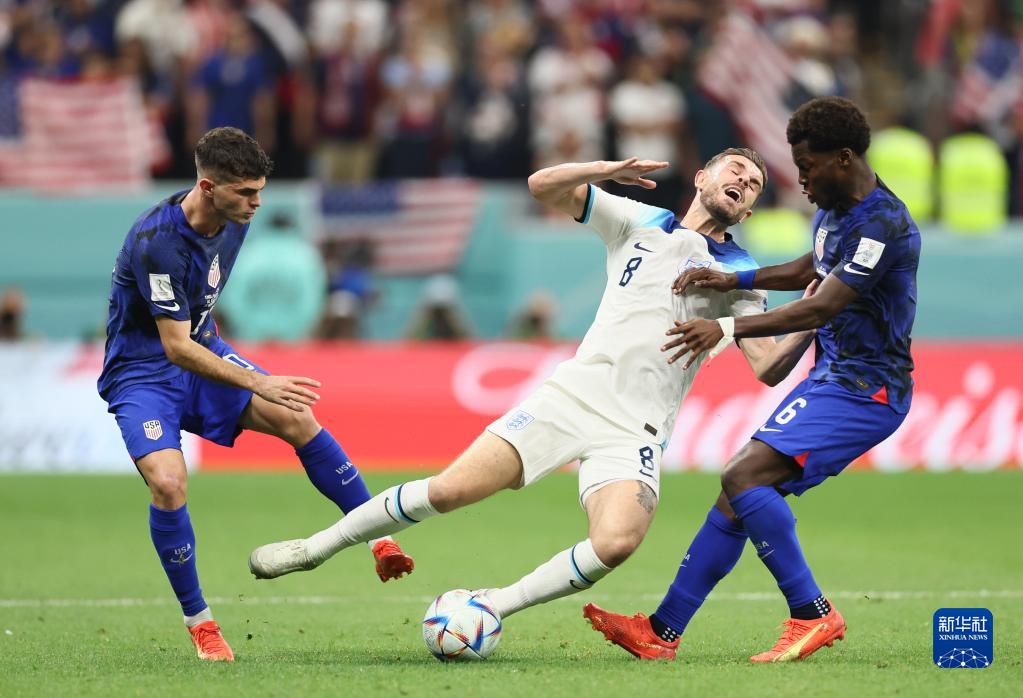 當日,在卡塔爾豪爾海灣球場(chǎng)進(jìn)行的2022卡塔爾世界杯足球賽B組比賽中,英格蘭隊以0比0戰平美國隊。